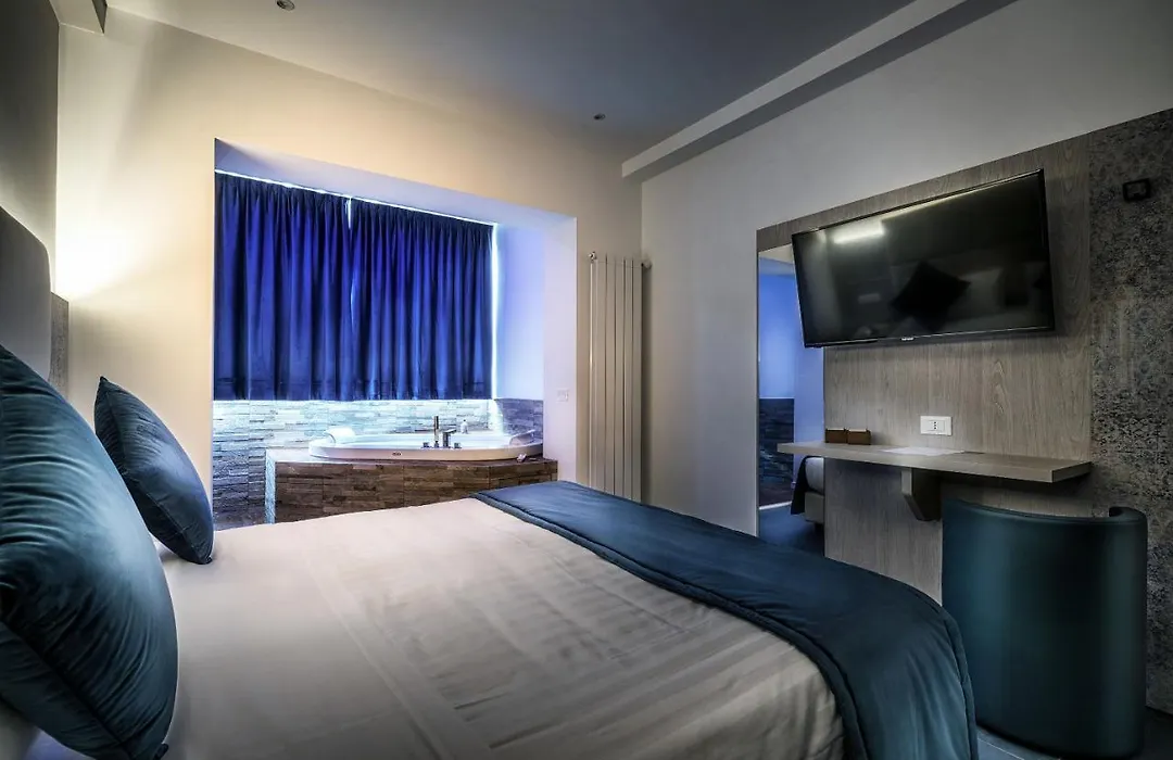 Le camere dell'hotel Suite Blue Style sono dotate di una TV a schermo piatto con canali satellitari, nonché di un mini bar per la tua comodità. I bagni dispongono di un bidet, un bagno con WC separato e una doccia e certe comodità, come asciugacapelli e teli da bagno.